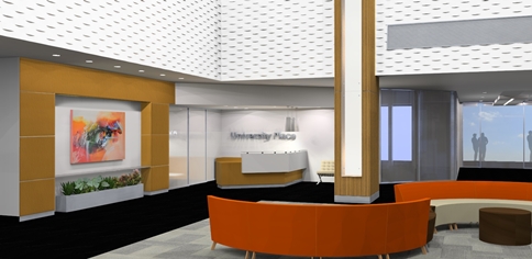 The name change is the first step in Butters’ and Bristol’s multi-prong strategy to reposition the property as a best-in-class office center. A multi-million dollar renovation and capital improvement project is being rolled out with renovations starting as early as March on upgrades and modernization of the building’s lobby atrium and new main entry. The newly rebranded University Place at City Center will also undergo full refurbishment of its front retail façade, which has immense street presence spanning nearly a half block along University Drive. A full upgrade of the building’s passenger elevator system, which includes two all-glass cabs that offer riders dramatic views of the lobby atrium, will be completed in February.